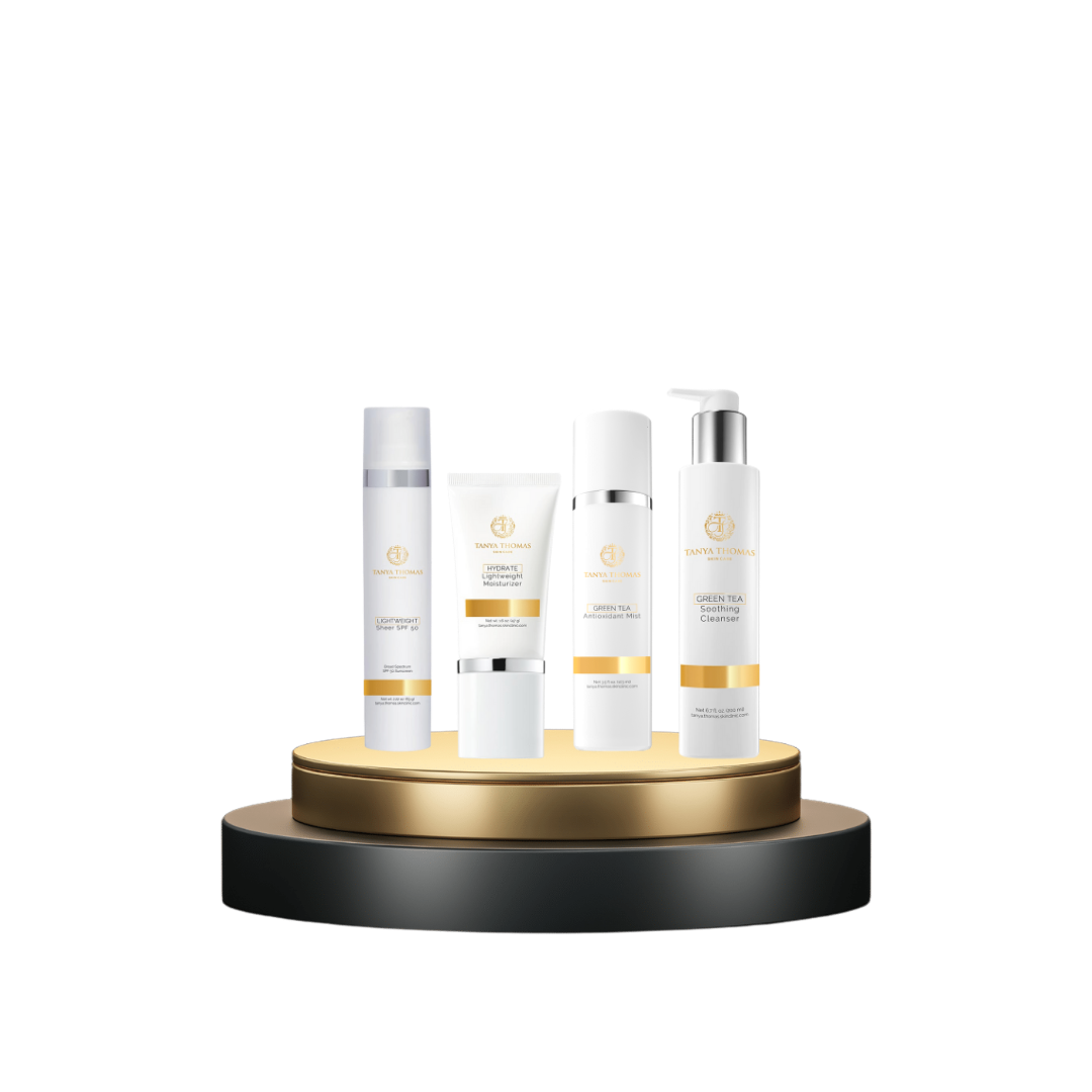 Discover the ultimate skincare combo with our Green Tea Cleanser, Antioxidant Mist, Hydrating Moisturizer, and SPF 50. Perfect for all skin types, this lightweight set provides deep hydration, powerful antioxidants, and sun protection for a radiant, healthy glow.